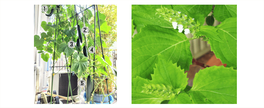 | この土日とも27℃位でした。特に今日は曇り気味で涼しかったですね。明日の月曜日は最高気温が32℃になるようですが、その後は27~28℃で落ち着きそうです。慣れるまで余計に涼しく感じるのでしょうか。 土曜日にキュウリを5本収穫しました。また、大葉の花が咲き始め、葉の生長が止まりました。 キュウリは7~8㌢の頃から、おそらく5本のうち幾つかは枯れるだろうと思っていたのに、5本とも成長しすべて収穫できました。尤も、大きさはバラバラで、20㌢が3本と17㌢が1本、太く実った15㌢が1本でした。下の写真の通りですが、この約10年の間で一度に5本を収穫したのは初めてのことでした。 気温と日照、栄養と水遣りの相乗効果がキュウリにとって最大限に発揮された結果なのでしょう。この間までの異常な高温下では1本でさえ難しかったのですから。 大葉の花は、これから「子孫を残す準備」に入るためのようです。葉の成長よりも繁殖に向かう植物の本能みたいですよ。でも、私はできるだけ長く大葉の味を楽しみたいので、花を摘み取って葉の寿命を長持ちさせるつもりです。 |